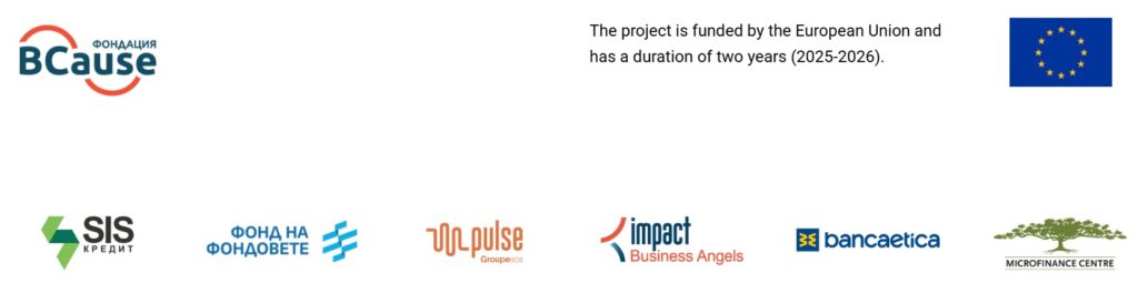 BCause Foundation is the lead partner in the project, which involves organizations with different expertise – SIS Credit, Fund of Funds and international partners from France – PULSE and IBA, Banca Etica from Italy and Microfinance Centre.
